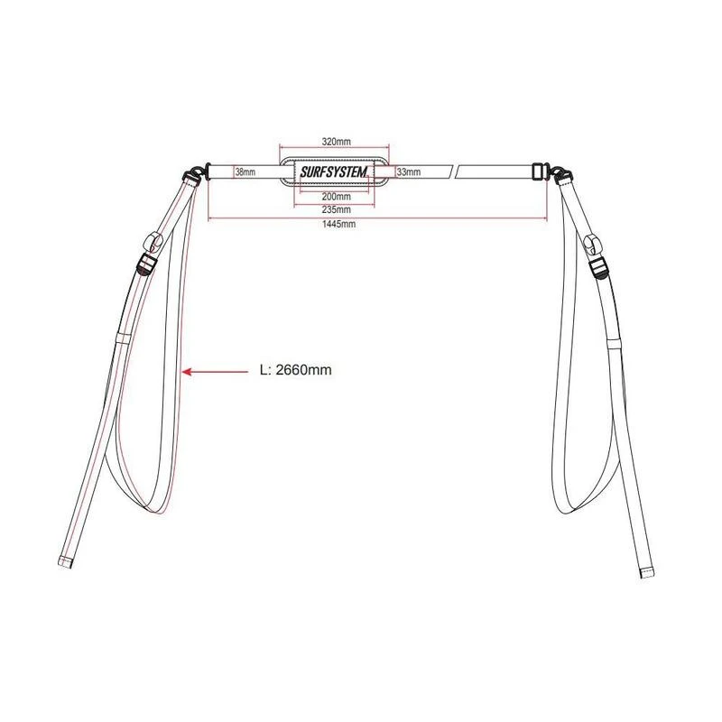 Sangle de transport SurfSystem pour longboard / SUP. Cette attache s’adapte à la planche grâce aux sangles, elle permet de transporter facilement une planche jusqu’au spot sans trop se fatiguer grâce